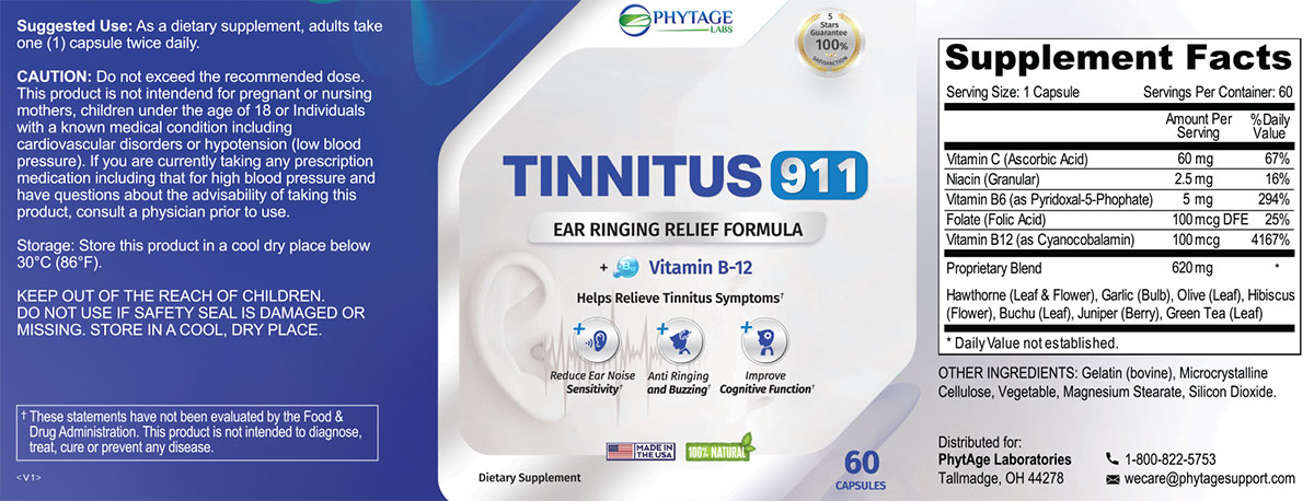 Each 1 month supply contains 30 servings of Tinnitus 911™.